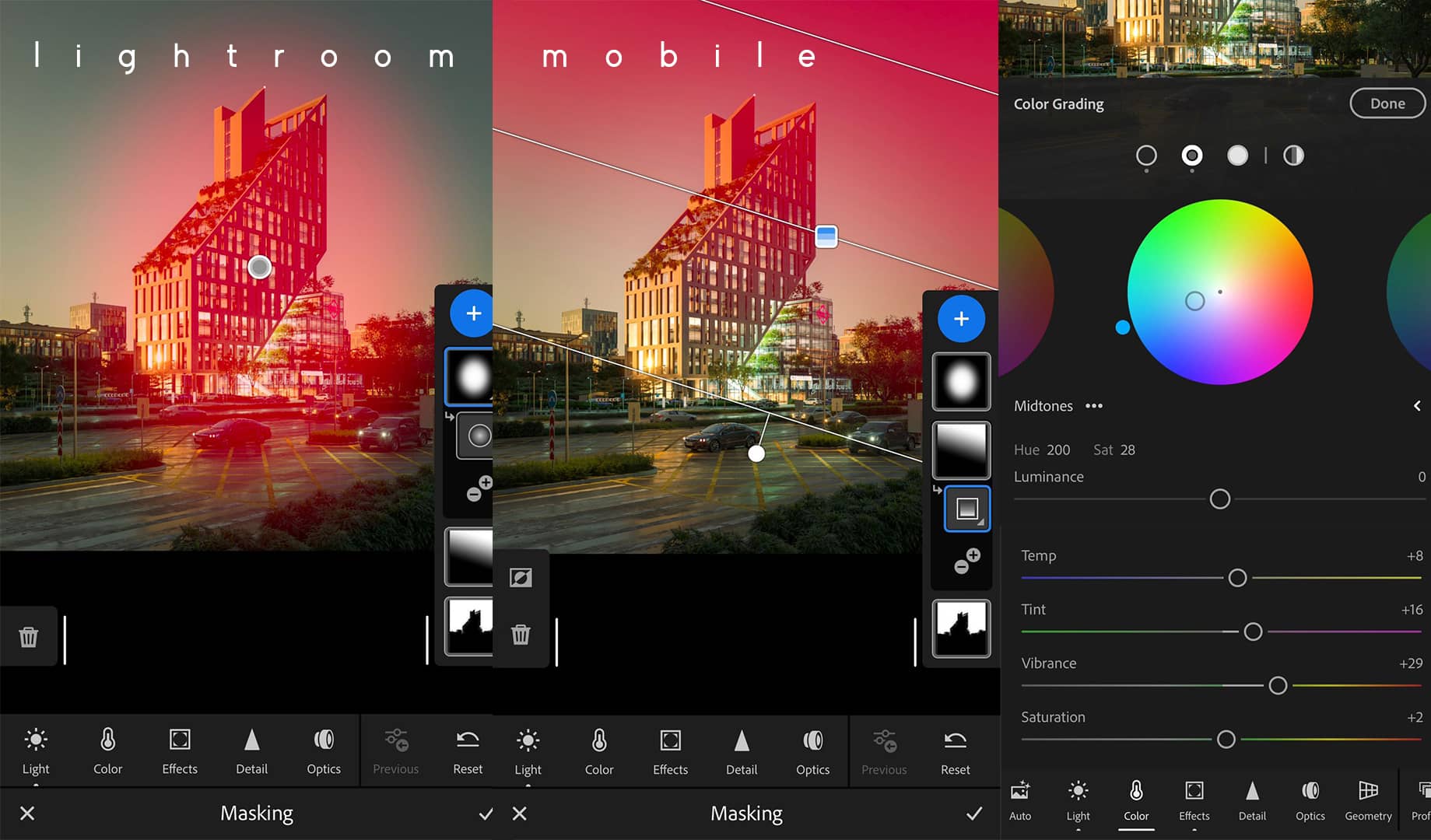 - Lightroom Mobile (for color grading)
