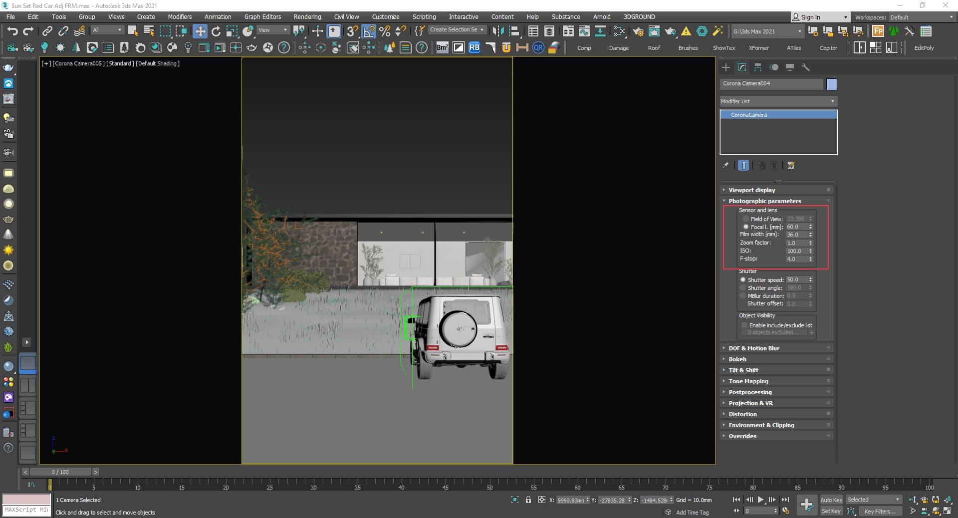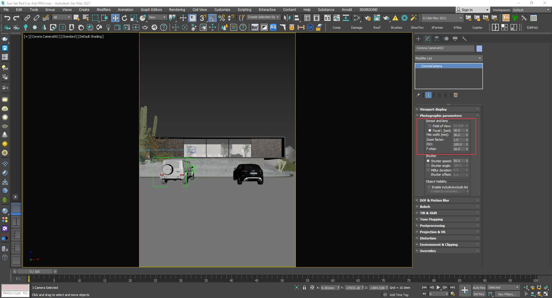 - Corona Sun & Sky system was used, supported by HDRI for cloud balance.